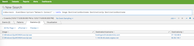 At a later stage the same script performs some internet connections. Here again, monitoring any script like wscript.exe, cmd.exe or powershell.exe making connections to Internet can provide a lot of meaningful information. (This is already discussed here http://blog.angelalonso.es/2017/08/malspam-campaign-exploiting-cve-2017.html)